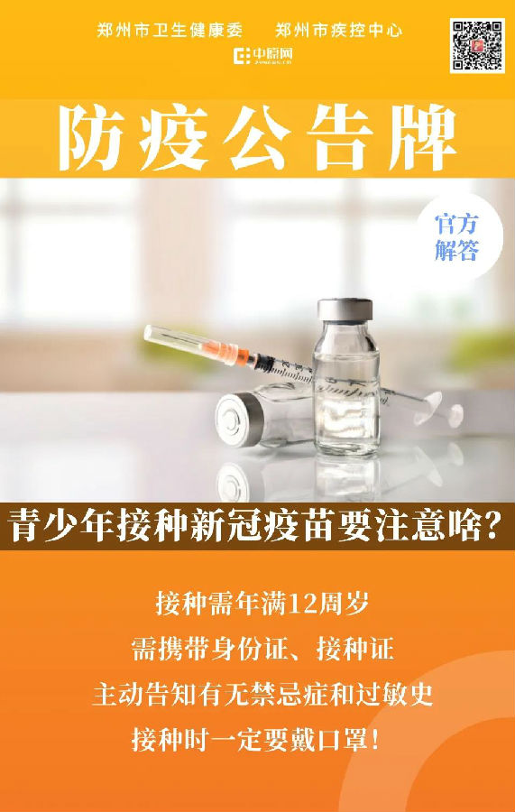 郑州市卫生健康委防疫公告牌:青少年接种新冠疫苗要注意啥?