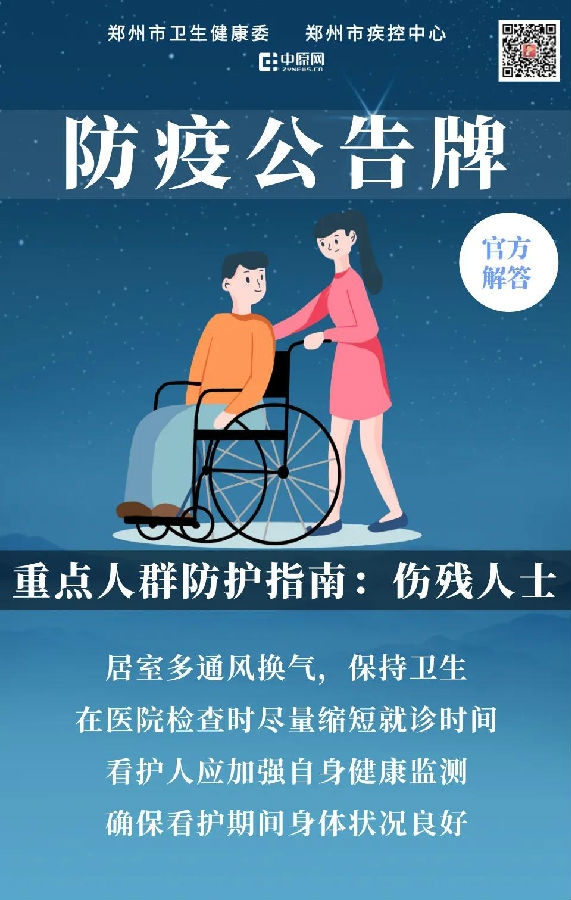 郑州市卫生健康委防疫公告牌:重点人群防护指南:伤残人士