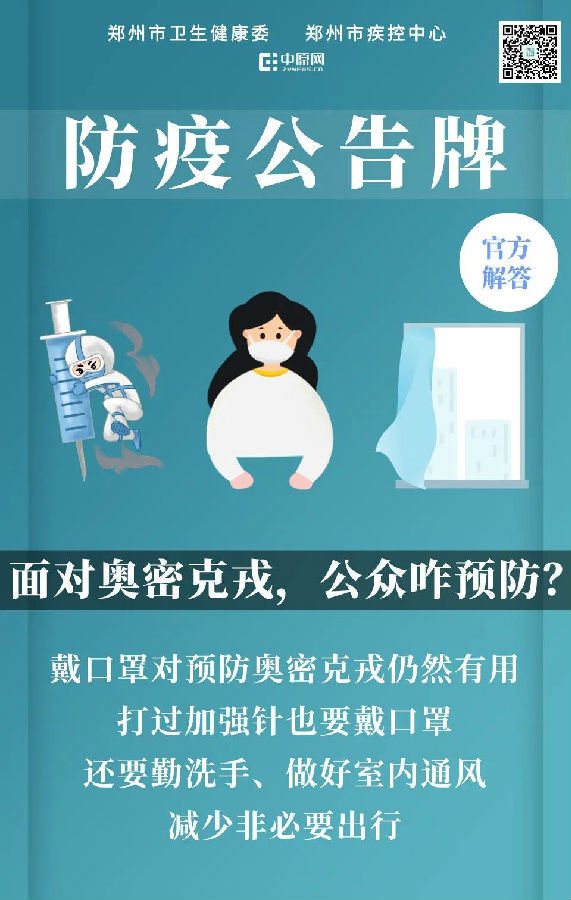 郑州市卫生健康委防疫公告牌:面对奥密克戎,公众咋预防?