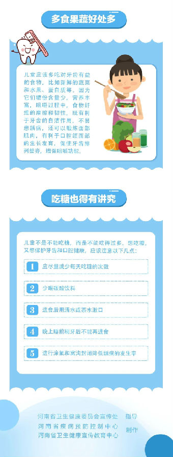 1.FDI建议儿童每日摄入糖量不超过3茶匙,还应尽量减少每天吃糖的次数;吃糖次数越多,牙齿受损机会越大。研究发现持续给糖比间断给糖对牙齿的损伤更大。