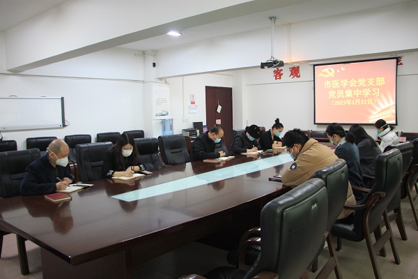 1月31日上午,市医学会党支部在408会议室开展党员集中学习活动,全体党员干部参加了学习,支部书记主持并领学。
