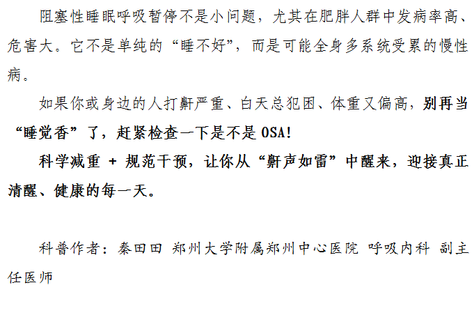 体重管理年健康科普专栏系列文章五:你真的睡得好吗? ——睡眠呼吸暂停综合征与肥胖的隐秘关联