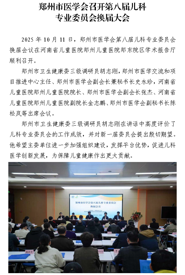 郑州市医学会召开第八届儿科专业委员会换届大会