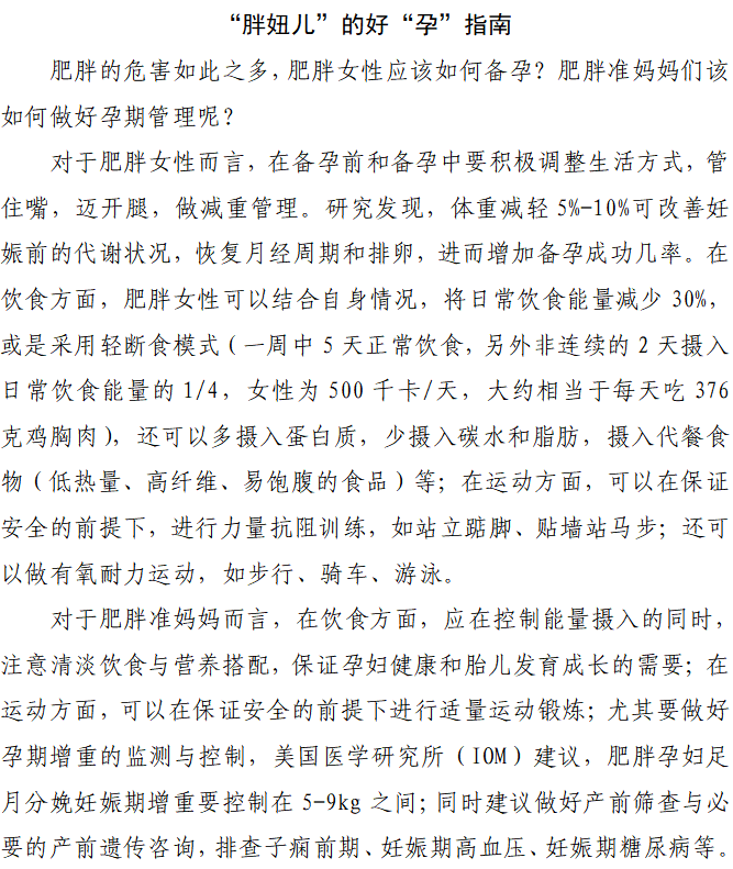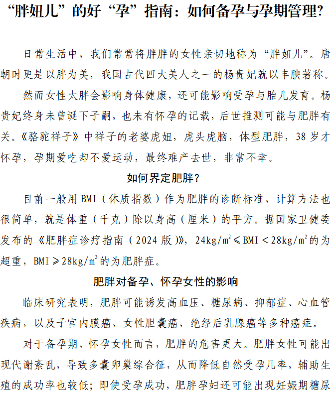 体重管理年健康科普专栏系列文章二十六:“胖妞儿”的好“孕”指南:如何备孕与孕期管理?