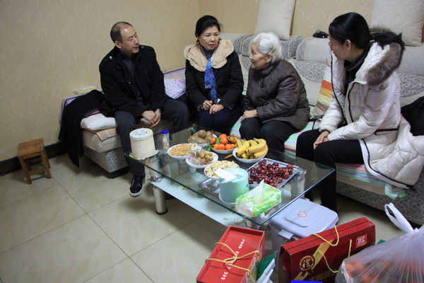 每到一个老干部家,会领导与老干部们促膝交谈,关切询问老干部的身体、生活情况和存在的困难,并代表市医学会向他们拜早年,为他们送上慰问品及节日的美好祝福,衷心祝愿老干部们生活幸福、健康长寿。会领导一边听取老干部的意见和建议,一边向老干部简要介绍医学会近年来的发展情况。
