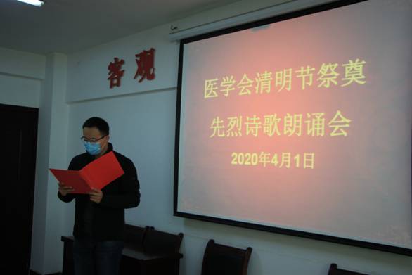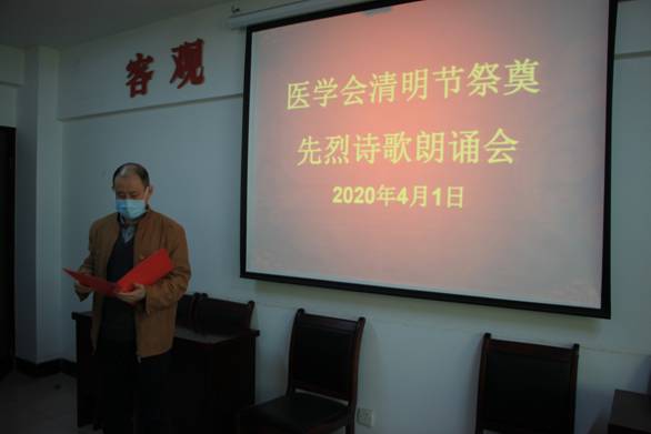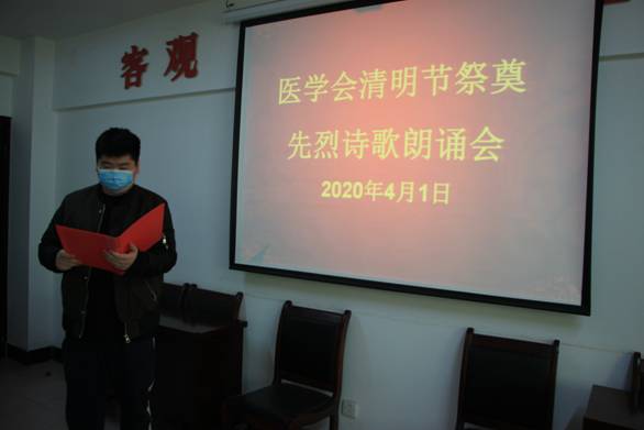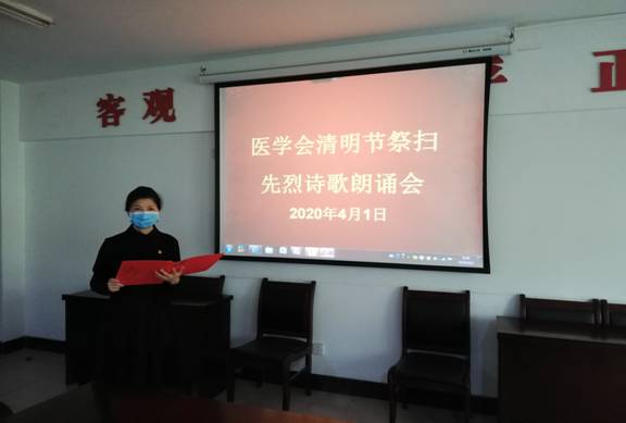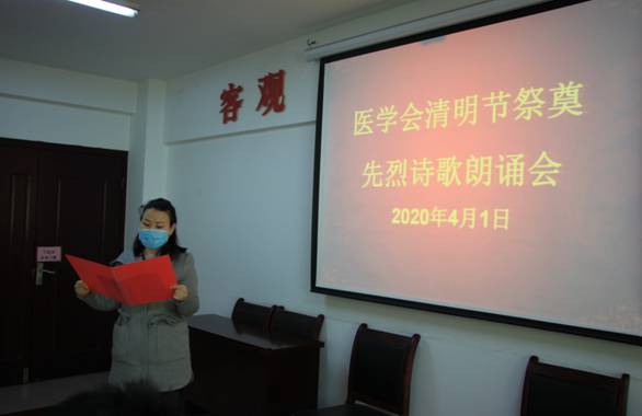 4月1日上午,市医学会组织干部职工在会议室开展了清明节祭奠先烈诗歌朗诵会。