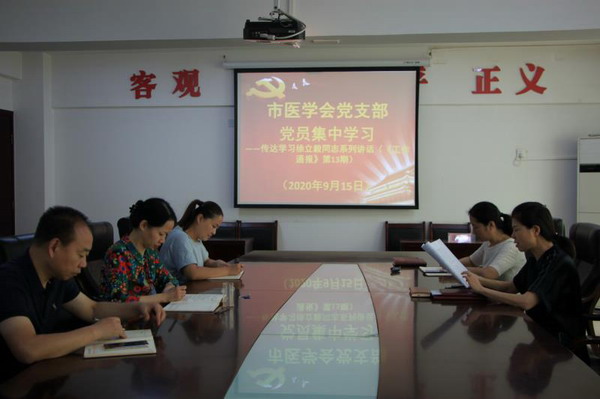 9月15日上午,市医学会组织全体党员干部认真学习徐立毅同志系列讲话(《工作通报》第13期)。
