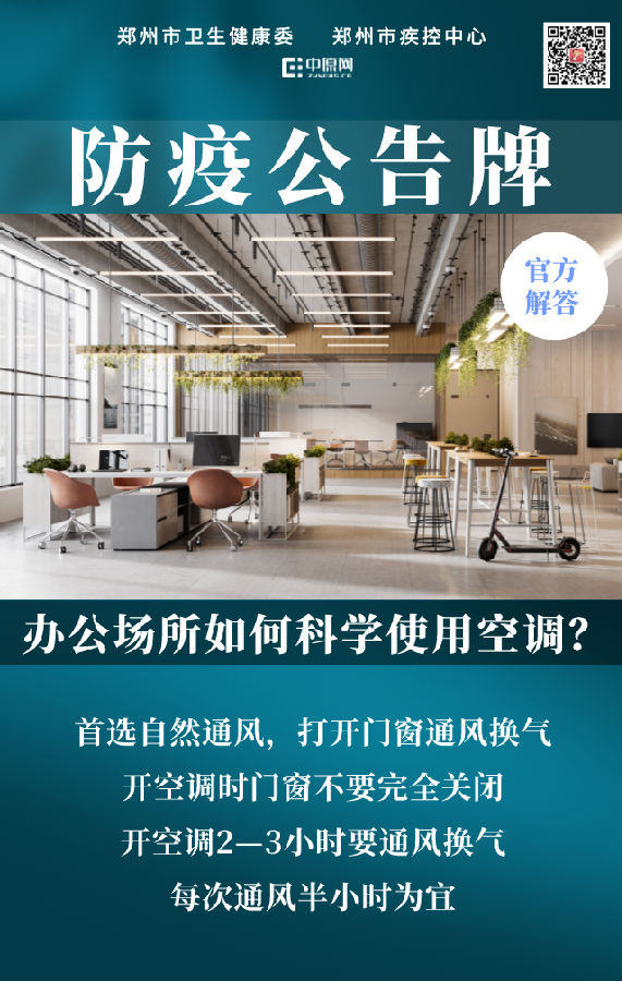 郑州市卫生健康委防疫公告牌:办公场所如何科学使用空调?