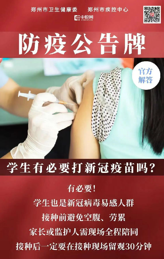 郑州市卫生健康委防疫公告牌:学生有必要打新冠疫苗吗?