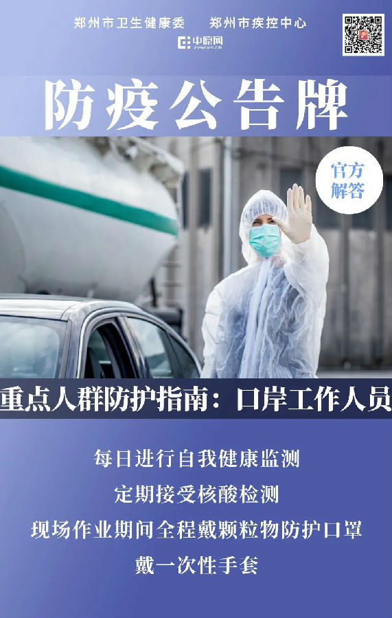郑州市卫生健康委防疫公告牌:重点人群防护指南:口岸工作人员