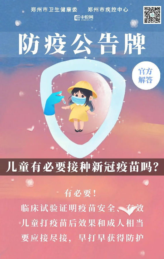 郑州市卫生健康委防疫公告牌:儿童有必要接种新冠疫苗吗?