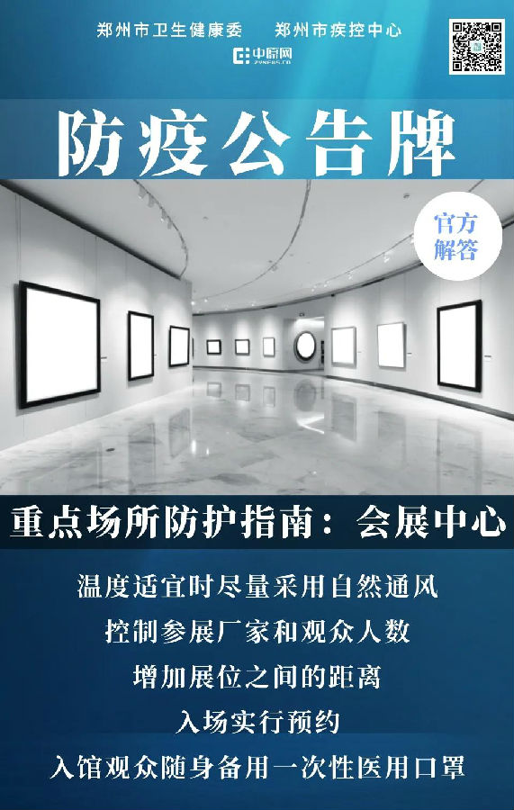 郑州市卫生健康委防疫公告牌:重点场所防护指南:会展中心