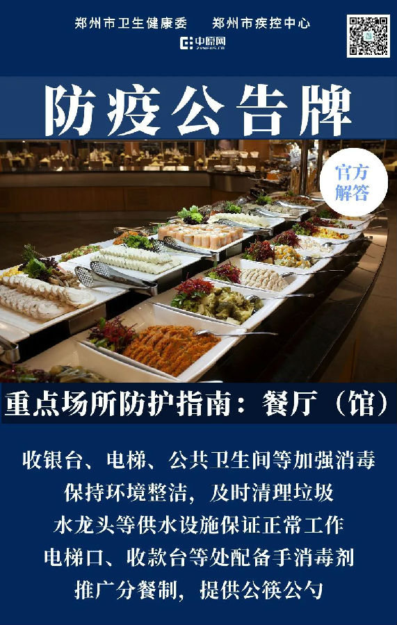 郑州市卫生健康委防疫公告牌:重点场所防护指南:餐厅(馆)