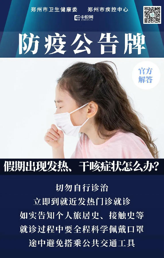 郑州市卫生健康委防疫公告牌:假期出现发热、干咳症状怎么办?