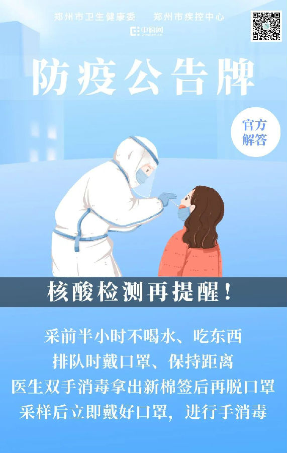 郑州市卫生健康委防疫公告牌:核酸检测再提醒!