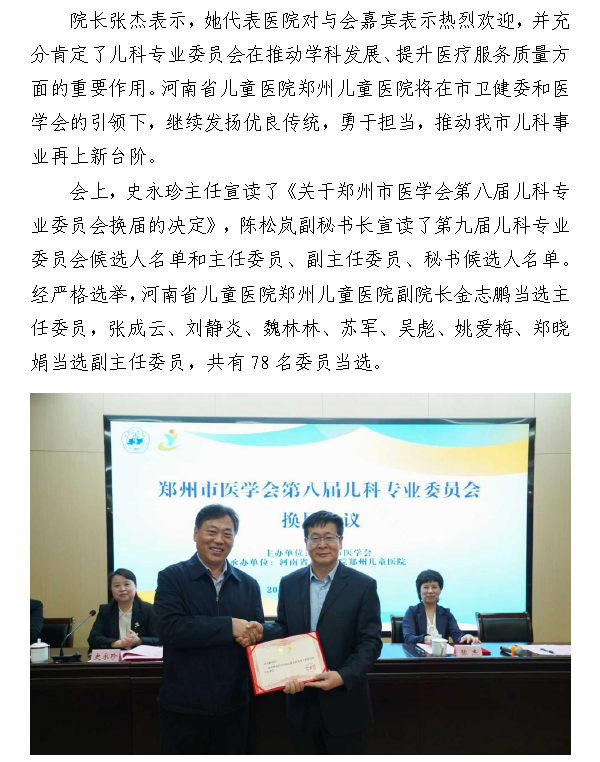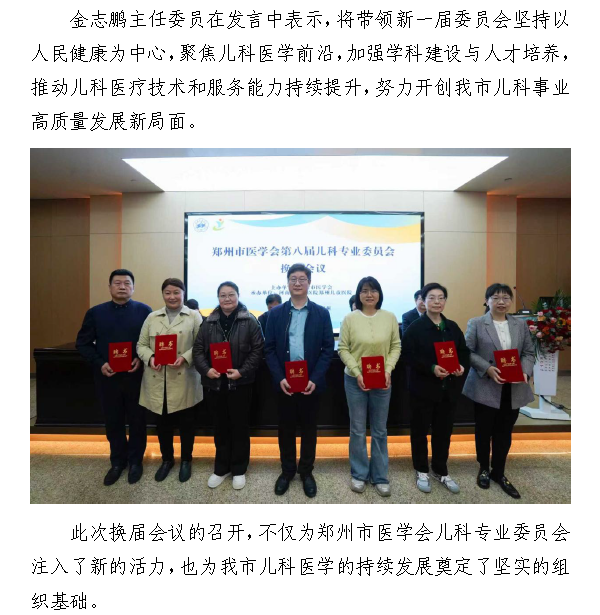 郑州市医学会召开第八届儿科专业委员会换届大会