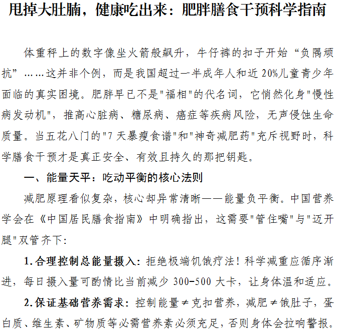 体重管理年健康科普专栏系列文章十二:甩掉大肚腩,健康吃出来:肥胖膳食干预科学指南