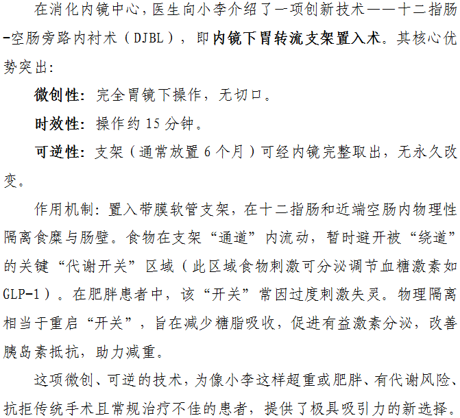 体重管理年健康科普专栏系列文章十八:肠道"隐形立交桥":内镜搭起肥胖治疗新通路 ——内镜下胃转流支架置入术
